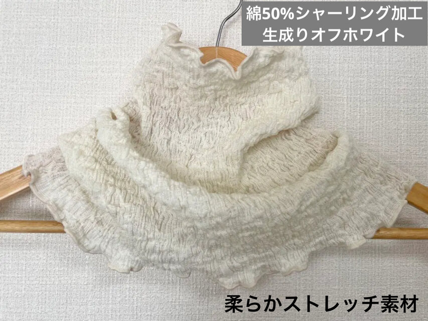 さらさら肌感綿50%シャーリング加工生成りオフホワイトネックウォーマー