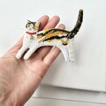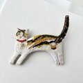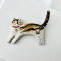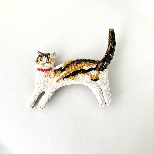 "mikeko" なーにー?わたしを呼んだ? あたたかみのあるウール糸を使った三毛猫さん手刺繍ブローチ