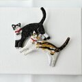 " shiro to kuro "なーにー?ぼくを呼んだ?あたたかみのあるウール糸を使った白黒猫さん手刺繍ブローチ