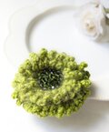 ウール糸でひとつひとつ丁寧に編み、中心にビーズを散りばめました。