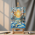 「黄金色の冬」は、雪に閉ざされた静かな森に輝く太陽の光が優しく包み込む特別な油絵です。この作品は、厳しい寒さの中に温もりを見出す瞬間を捉え、見る者に心の安らぎをもたらします。木々の間から溢れ出す黄金色の光が、日常の中にひときわ鮮やかな存在感を与えてくれることでしょう。