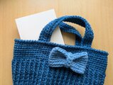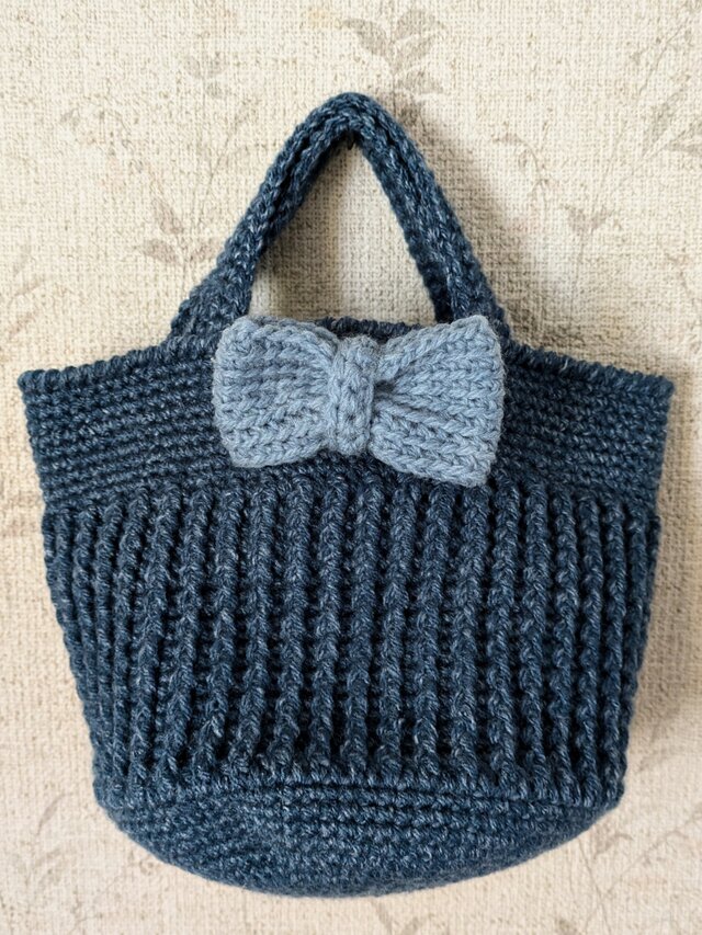 メランジアクリルの糸で編んだシンプルな丸底のミニバッグです!