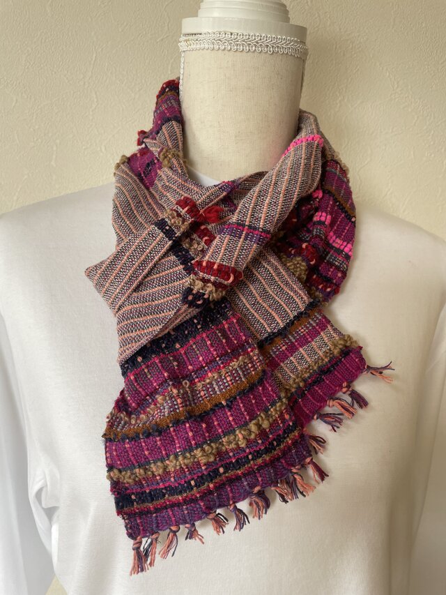 ベリー色を集めて織りました。ベリーのタルトやジャムを思い浮かべつつ。