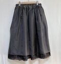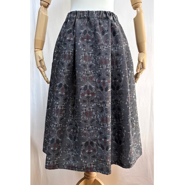グレイ地にモダンな小花と唐草文様、生地は織り、しなやかなハリのある生地でふんわりとしたスカートに仕上がりました。