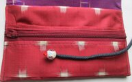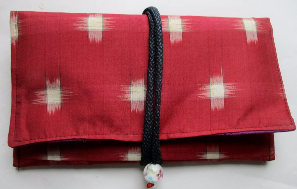 唐桟柄財布 写真より実際の方がいい感じですね、スマホ入れかな?ポーチ(巾着)も付いてて便利そう。和物はなんか落ち着いていいですね、縫製も丁寧で長く使えそうです。