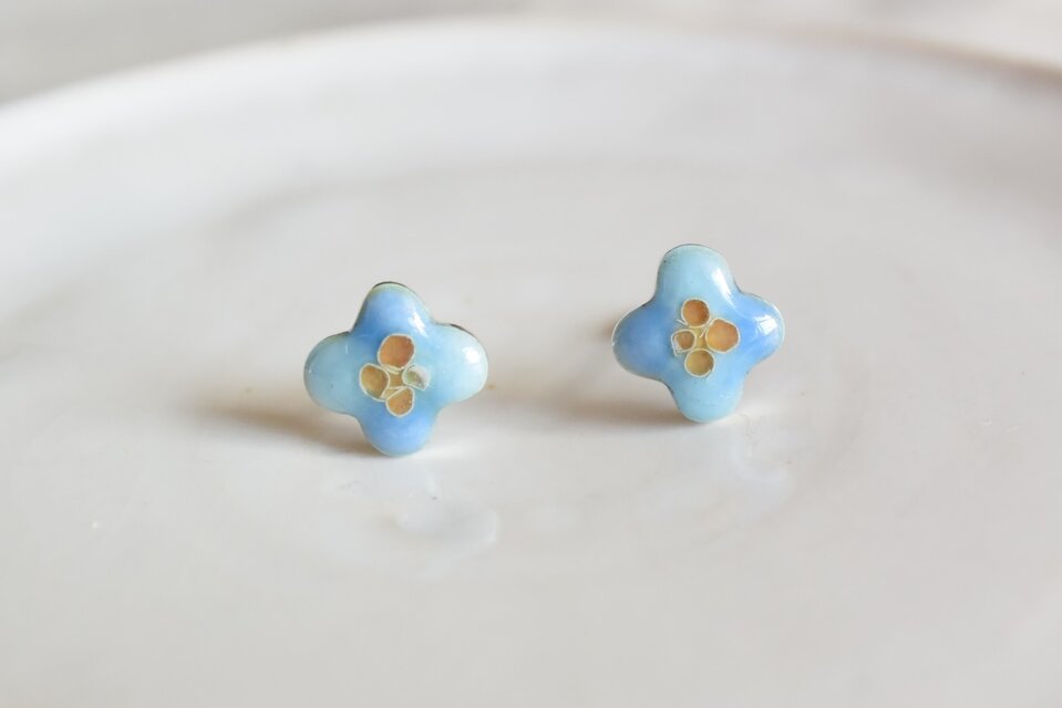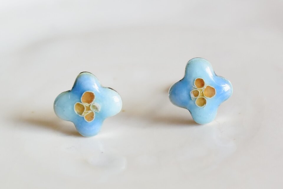 有線七宝の技法で仕立てた、小さなお花のピアスです。