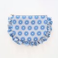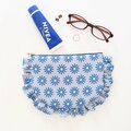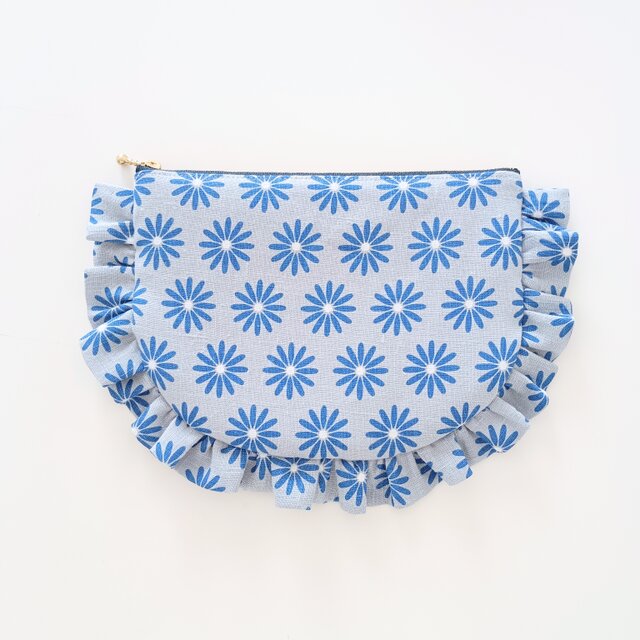 リトアニアリネンのフリルポーチ 20cmファスナー フラットポーチ マーガレット 花柄 ギフト 大人可愛い 上品 ブルー