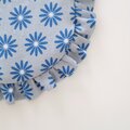 可憐で上品なマーガレットの花がプリントされた生地は、グレイッシュブルーをベースにサファイアブルーの花びらがやさしく映え、落ち着きのある大人可愛い雰囲気に。