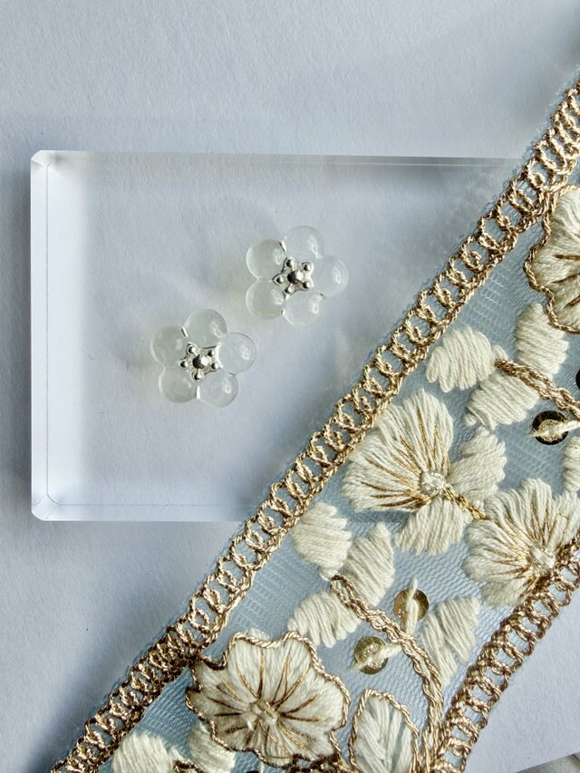 透明な花びらに、さりげなく輝くシルバーパーツを合わせた