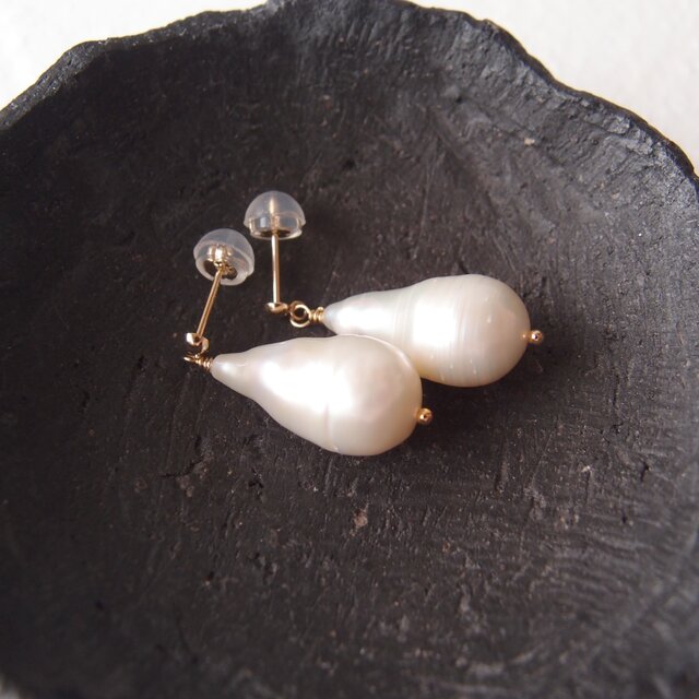 左右の形状が調和する美しい雫型の粒を厳選したワンペアです。