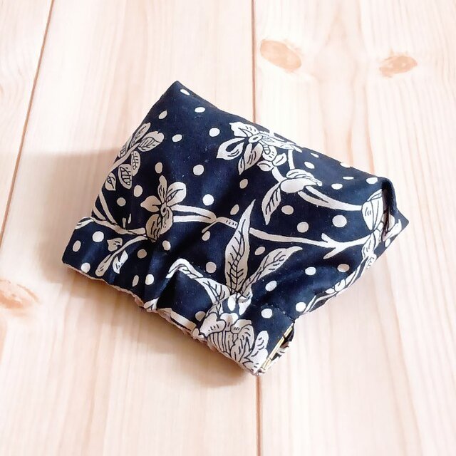 リバティプリントのタナローン生地を使用して製作した、小さめのバネ口ポーチです。