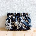 リバティプリントのタナローン生地を使用して製作した、バネ口ポーチです。