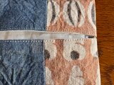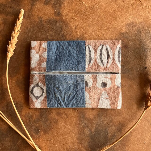 パンモチーフと藍錠染めやベンガラ泥染めで染めた生地をはぎ合わせて作りました。