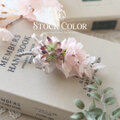 上品なホワイトピンクの桜を、パールとオーガンジーリボンで仕上げたブートニア・コサージュ。