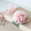 上品なホワイトピンクの桜を、パールとサテンのリボンで仕上げたブートニア・コサージュ。