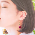 気品溢れるグリーンのクロムダイオプサイドとこっくりワインカラーのワインカラージェイドを合わせたシンプルなピアス/イヤリングです。