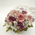◇モーブピンクにサンドベージュとブルーグレーを合わせた、シックで上品な大人っぽい印象のアレンジで、お部屋のインテリアフラワーとして素敵に飾って頂けます