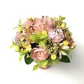 ◇アーティフィシャルフラワーで、サーモンピンクの陶器の花器にアレンジしました、ミニサイズの仏花です