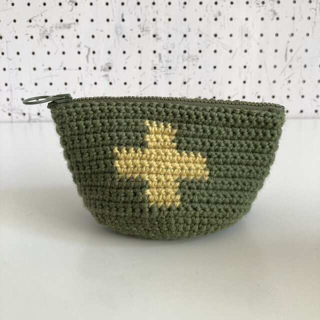 WOOL!クロスのミニポーチ*オリーブ×サルファイエロー