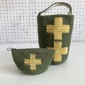WOOL!クロス柄のワンハンドルバッグ*オリーブ×サルファイエロー
