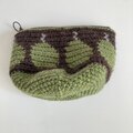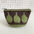 極太の毛糸で洋なし柄を編み込んだポーチです。