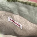 トリコロールカラーが 涼やかで 編目が 細やかで 丁寧に 編まれている。 肌触りも 柔らかで くったりしているので 畳んで 大きなバックに 入れて 持ち歩けそう。