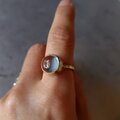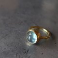 爽やかなブルー丸いフォルムが可愛らしいアクアマリンを真鍮リングに仕立てました。