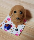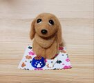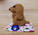 手のひらサイズのクリームダックス羊毛フェルト。餌皿と骨付き。