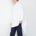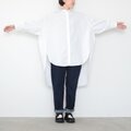 身幅にゆとりを持たせることで、体のラインを拾わず、さっと着るだけで雰囲気の出る一枚です。