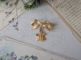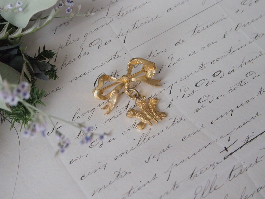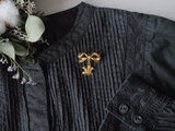 ゴールドのリボンと羽のブローチ