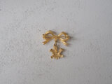 ゴールドのリボンから、3本の羽の装飾がぶらさがるブローチです。