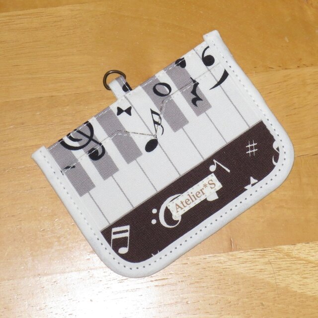 ブラウン地に音符と鍵盤が描かれた生地で作りました。