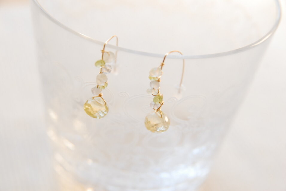 レモンクォーツをポイントにしたマーキスフックのピアスです