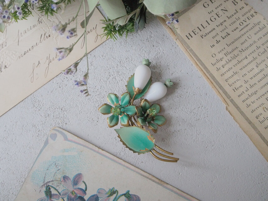 オーストリアのエナメルとミルクガラスのブローチ