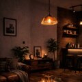 チェーンタイプの銅古美色の灯具や半田(ガラスをつなぐ金属部分)のアンティークカラーが、雰囲気を盛り上げてくれます。