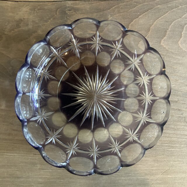 淡い紫色がなんとも綺麗なカットガラスのお皿です。