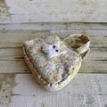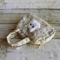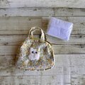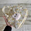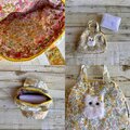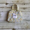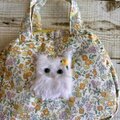 春らしくて優しい小花柄(ポリエステルコットン生地)でミニボストンを作り、ふわふわ白猫ちゃんをプラスしてふんわり可愛く仕上げました。