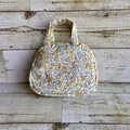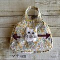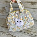 春らしいイエロー系の小花柄×猫ちゃんの大人かわいいミニボストンバッグです。