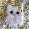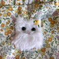 ふわふわ白猫ちゃんのお耳には手刺繍ミモザをプラスして、
