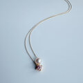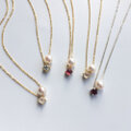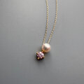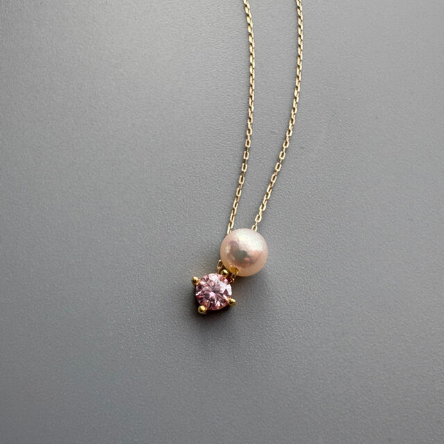 2粒シリーズ自分へのご褒美ジュエリー〜4月の誕生石〜春色桜ピンクモアサナイトとあこやパールのスルーネックレス