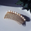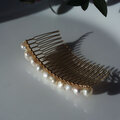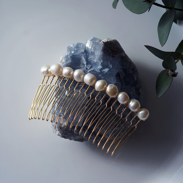 バロック淡水真珠の連なるヘアコーム・金具カラー変更可 ~白椿(しろつばき)