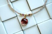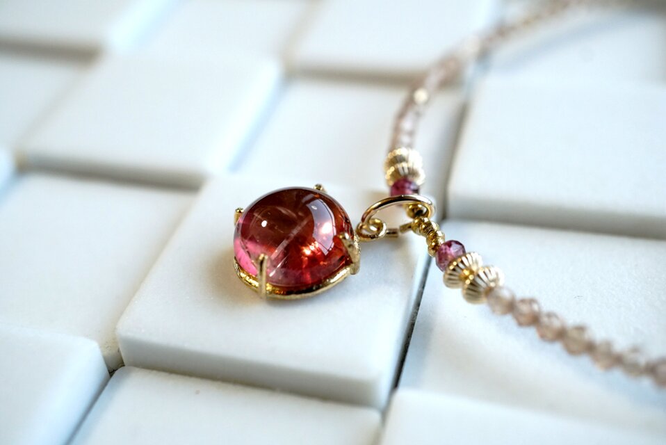 【素材】トルマリン・ジルコン・ヴェルメイユビーズ・K14ゴールドフィルド留め金・ナイロンコートワイヤー