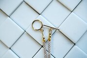 ネックレス部分にはこれまた宝石質の美しいベージュの天然ジルコンを使いました。とても細かい2mm玉、カットがほどこされていますので、実寸よりさらに小さく見えるかと思います。チェーン感覚でおつけいただけます。