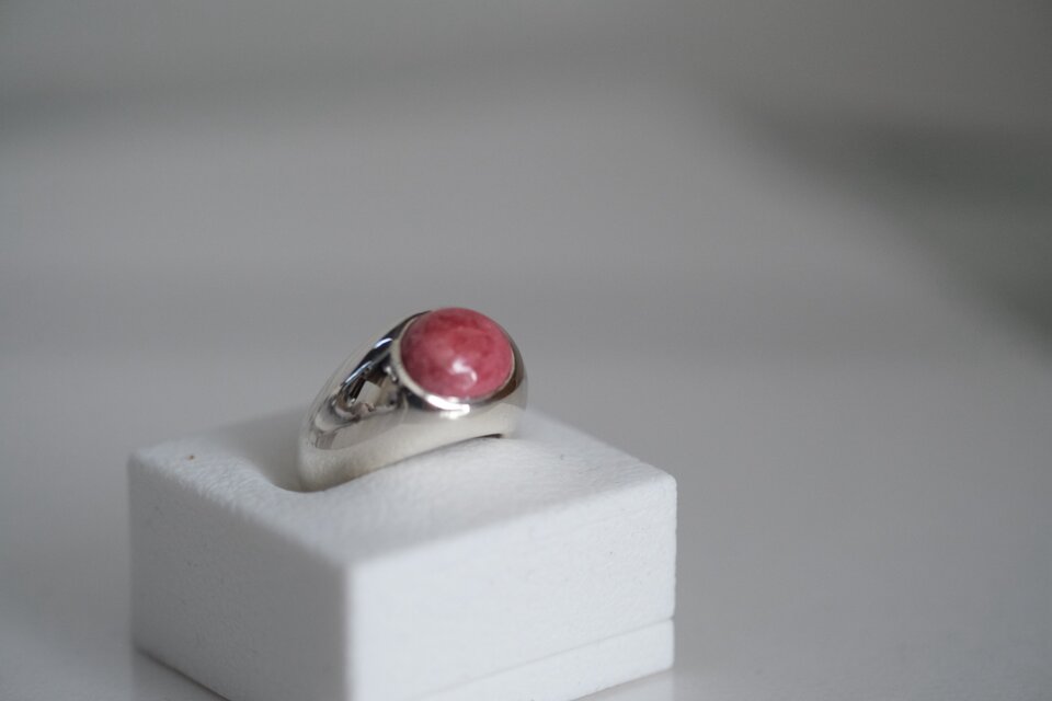 優しく落ち着いた深みのあるピンクが美しいロードナイトをセットしたsv925リ製リングです。シルバーのなめらかな艶が石の色味を引き立て上品で温かみのある印象に仕上げました。シンプルで丸みのあるデザインは指に馴染みやすく日常使いにもオススメです。