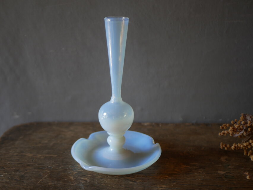 オパリン 受け皿の付いたフラワーベース フランスアンティーク ブロカントのある暮らし