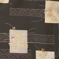 【 着物リメイク ワンピース/ドレス/洗える化繊 帯サッシュベルト 墨黒の庭園 × 格子の記憶 KW-1280】