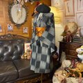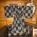【 着物リメイク ワンピース/ドレス/洗える化繊 帯サッシュベルト 墨のシグナル × 揺らぎの市松 KW-1281】