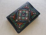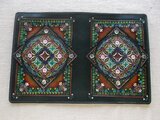 表装には、刻印を排列したのちに拭き染めで自家染色を施しています。