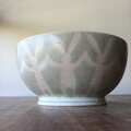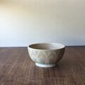 淡い緑地に白いうさぎが手をつないで並んだボウルです
