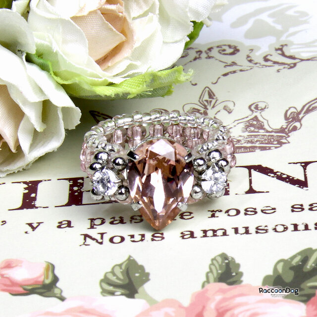 ビーズ リング コスチュームジュエリー ビーズアクセサリー ビーズリング スワロ ジルコニア クリスタル しずく